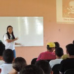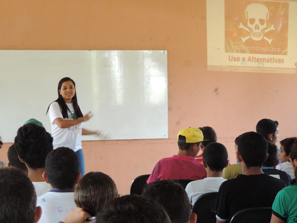 A palestra ministrada pela Gestão Ambiental da BR-230/422/PA na Casa Familiar Rural de Anapu teve como objetivo desenvolver um trabalho educacional no intuito de difundir conceitos e práticas para a saúde do produtor abordando os riscos da utilização dos agrotóxicos tanto para a saúde do consumidor como para a do agricultor, além dos danos causados ao meio ambiente com a contaminação do solo e principalmente da água. Segundo a engenheira agrônoma, Luanna Nava, o agricultor entende o agrotóxico como “veneno” para as pragas da agricultura o que eles não têm é a noção exata de como essas substâncias podem afetar a saúde de cada um, “ainda não há uma clareza suficiente para os agricultores de que esses produtos são também um veneno para eles e por isso a importância de se proteger com o equipamento de proteção individual (EPI). Além disso, aproveitei para ressaltado que se deve respeitar o período de carência para a colheita que é de dez dias e que as embalagem não podem ser reutilizadas”.